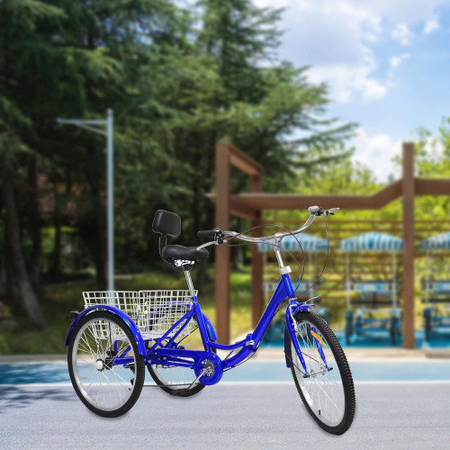 Сгъваема Семейна Триколка за всички възрасти 24 цола, 7 скорости, 3 спирачки, Цвят синьо