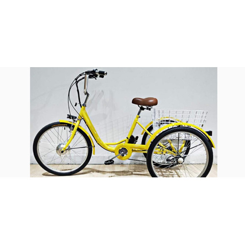 Електрическа велосипедна триколка - ХИБРИД - 24 цола, 6 скорости, 36V 10.5 Ah, 250W, Жълт цвят