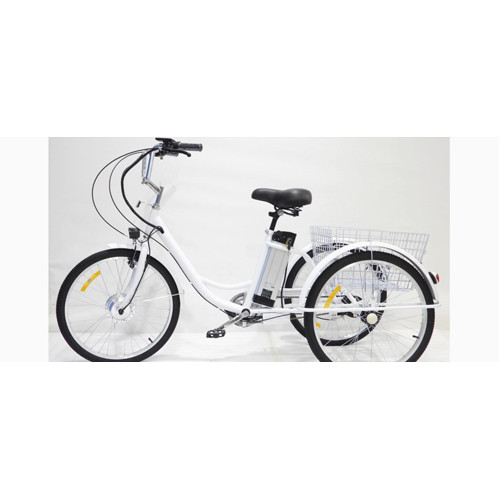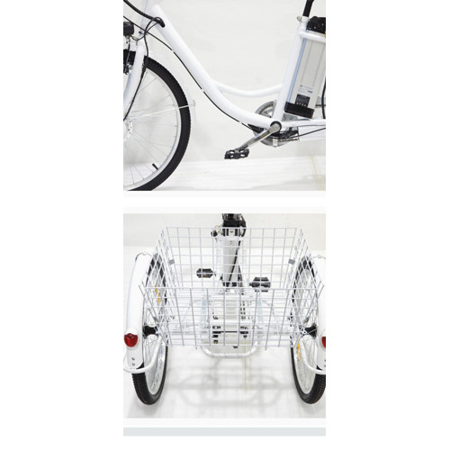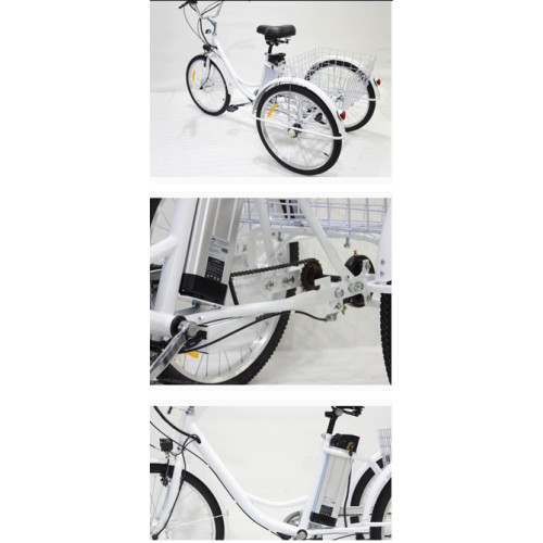 Електрическа велосипедна триколка - ХИБРИД - 24 цола, 6 скорости, 36V 10.5 Ah, 250W, Бял цвят